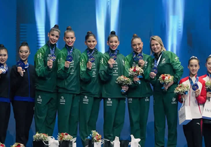 David Henrique está no centro da foto, na fileira de trás, mostrando a medalha de Ouro